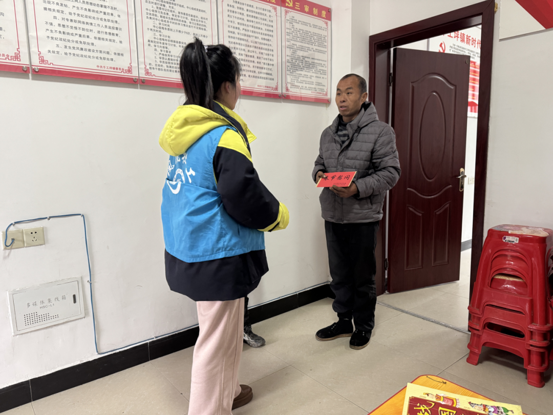 1月25日,为进一步增强辖区居民安全用火用电意识,腊尔山社工站社工杨进积极链接志愿者在辖区内开展安全用火用电宣传活动。