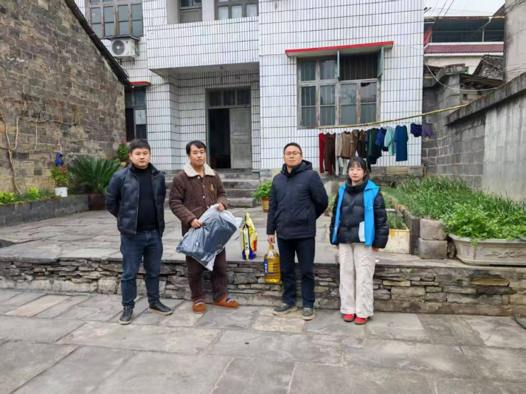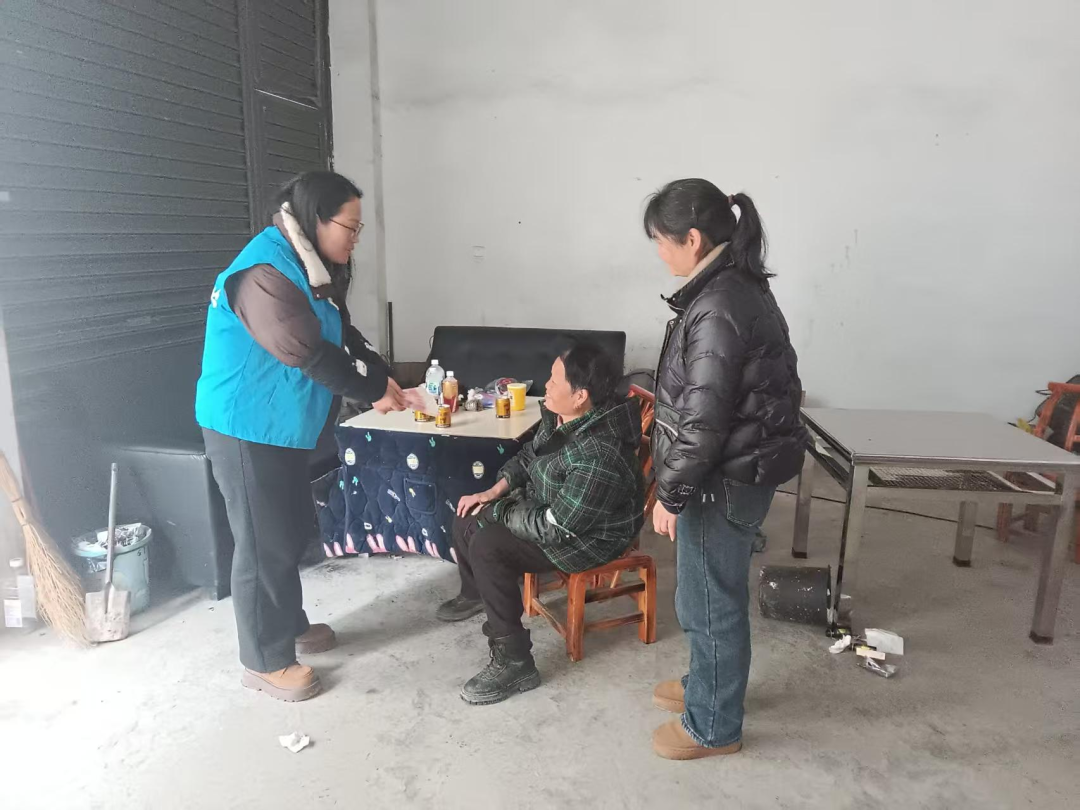 1月26日,新场镇社工王敏同政府工作人员开展春节前走访慰问活动,为辖区内部分监测户送去米、油、棉衣等生活必需品,并提前送上新春的问候与祝福。